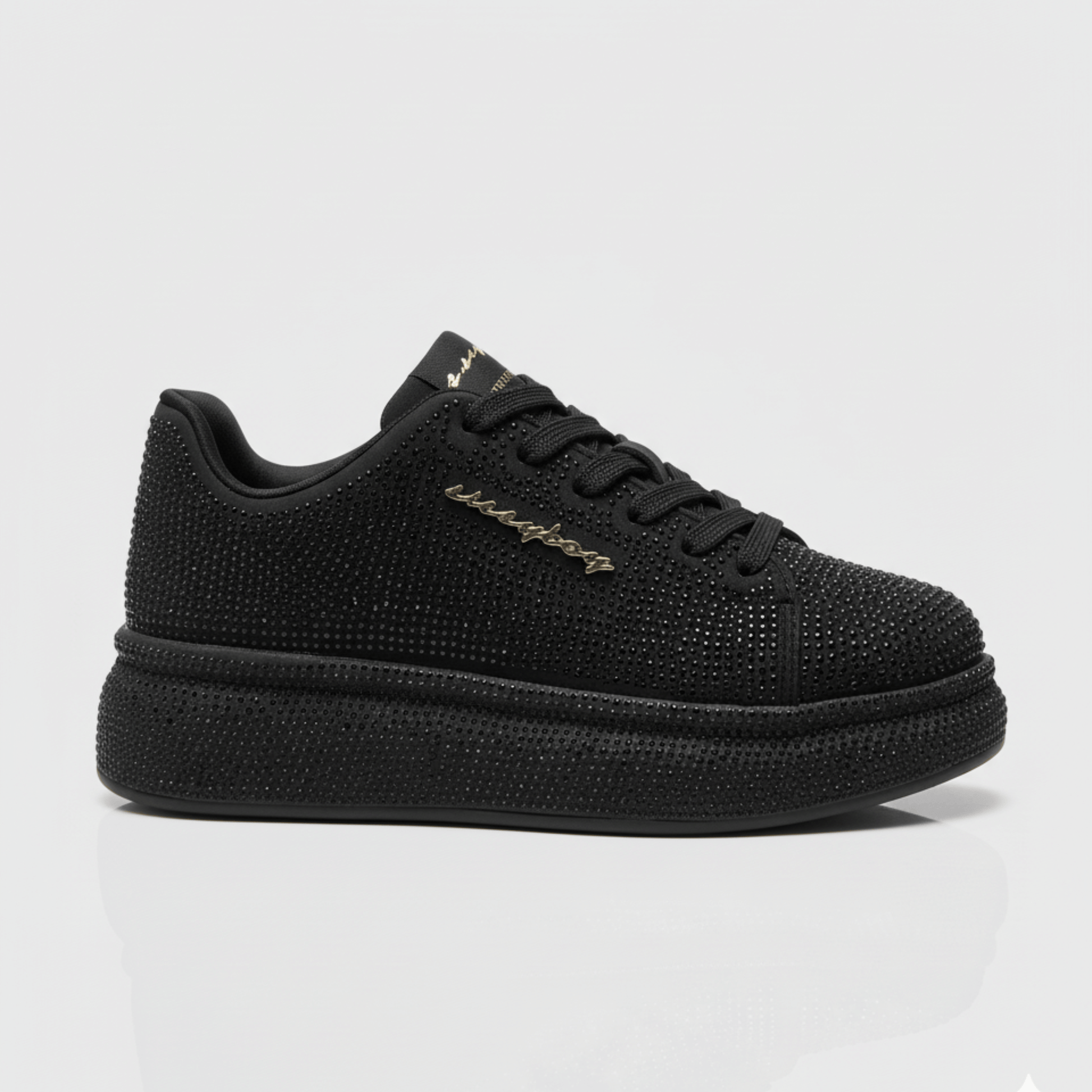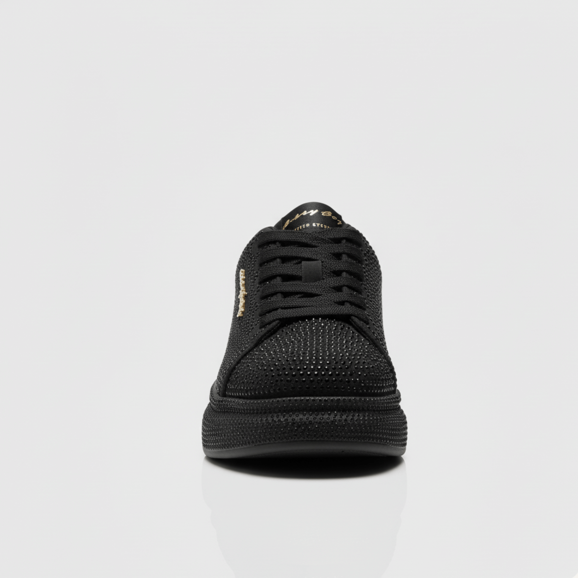 Step into effortless glamour with the Sissy Boy Emblazon Black All Over Diamante Sneaker — where sport-luxury meets modern chic. Designed for the bold woman who loves to shine, these sneakers feature a fully encrusted diamante upper that catches the light from every angle. The sleek black tone is perfectly balanced with the subtle shimmer, giving you the ultimate statement sneaker that transitions seamlessly from daywear to evening style.