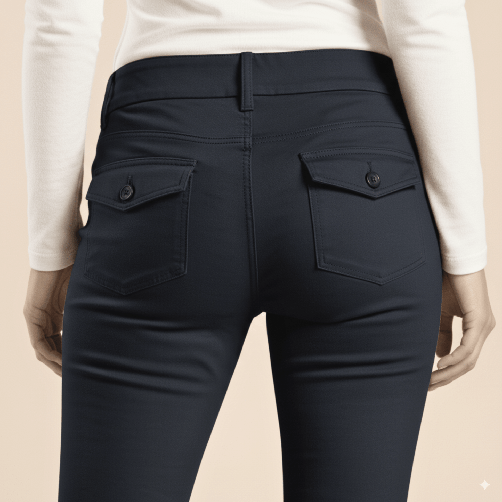 Made from a soft stretch fabric, these pants move with you and feel great from morning to evening. The two front pockets and two back pockets make them as practical as they are stylish.